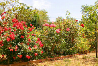 Gardens are planted with various fruit/nut trees Vegetables soft fruit and flower and rose beds.