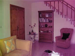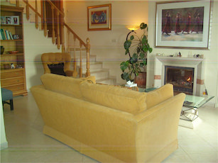 - Living room with marble fireplace inset log burner.Marble staircase to master bedroom and en-suite