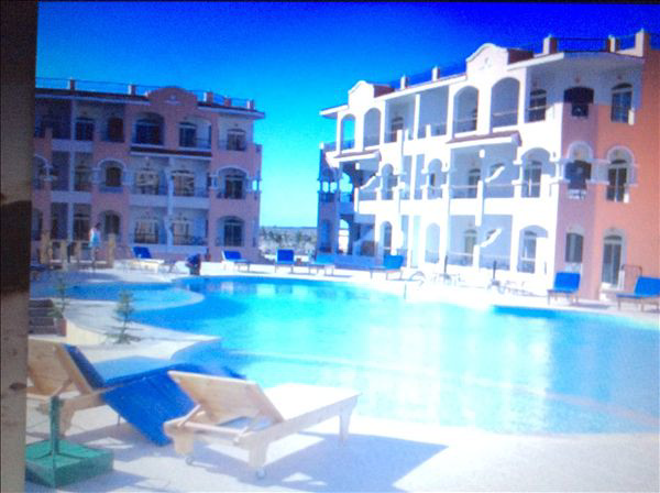 2 bedroom flat ground floor balcony overlooks pool furnised air cond, sea view from roof terrace 4 more pools on complex cafe, shop 10 mins from airport 24 hour security nice quiet compound mini bus stops close by 10 mins to nabq town.20 mins tp namma bayContact Seller
