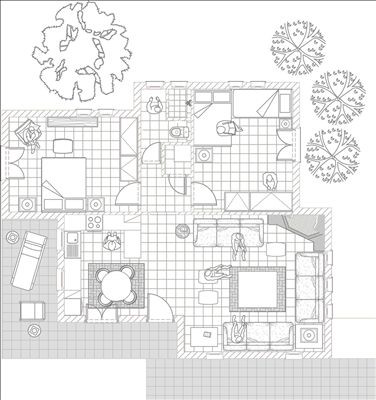 b. Groundfloor: designed for independent 100 sq.m. apartment