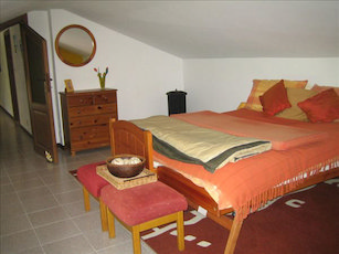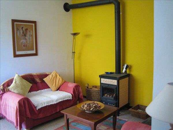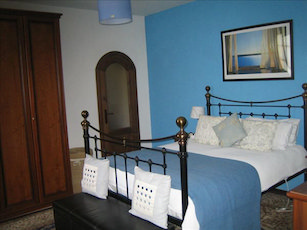 Marble staircase from hallway leads to a master bedroom with en-suite and small sun room. Two arched french doors lead to an outside balcony. There is a cosy seating area with wood burning stove, a large bedroom with shower room.