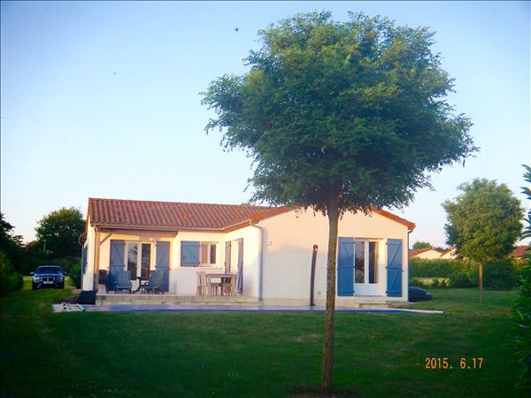 Vieille Vigne is. 40minutes drive from Poitiers (Biard) Airport.A modern Villa on a triangular 1050m2 plot on the tranquil Vieille Vigne Villa Estate, part of the Chateau les Forges 27 hole Golf Complex. Situated in the tranquil village of Les Forges, on the borders of the Deux Sevre and Vienne departments of the Poitou Charente region. The property comprises of a Large baronial style living/dining room with a well equipped, new and modern open-plan kitchen adjoining the dining area. 3 double bedrooms, 1 with en-suite, 1 family bathroom, plus hallway with 1 toilet and 1 cupboard housing washing and drying machine. 1 Exterior storage room for garden equipment and a secluded sun terrace overlooking the 9m x 4m heated swimming pool.