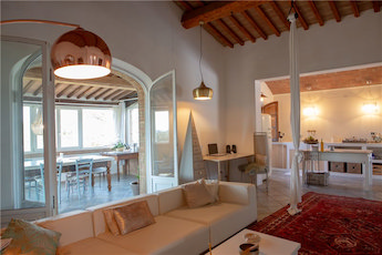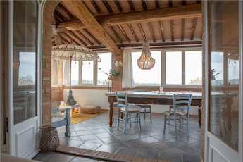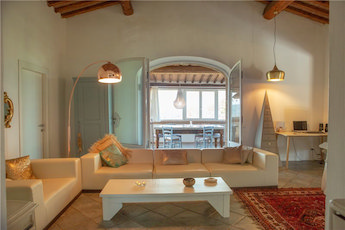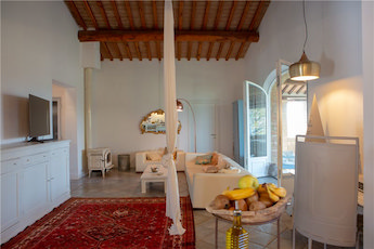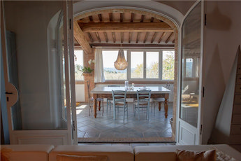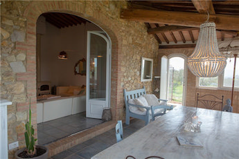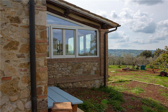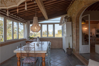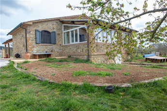 Beautiful stone house sitting on a gentle Tuscan hill with spectacular views over the valley and across to Elba Island and Corsica. Only a five minute drive to the village of Riparbella and twenty minutes to the coast.Set in 11.475 square metres of which half olive grove (90 trees), charming gardens and double excellent access road.