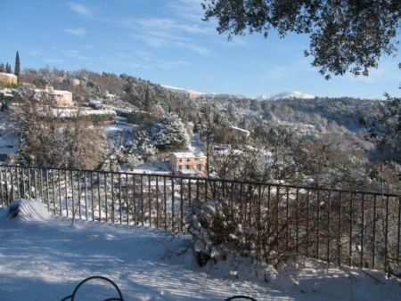 1 Place De L’Horloge was built for the mayor of Tourrettes on a site which he earmarked for himself and which otherwise would be unavailable for building. The house is situated on the Place de L’Horloge adjacent to a 12th century Bell Tower with sweeping views over the valley to distant hills and snow capped mountains. Location being everything, the house has an enormous terrace to take advantage of the spectacular setting. Although a village house, and just a few minutes walk from Fayence with its cafes, restaurants and shops, its privileged position makes it the only free standing and completely private house on the Place de L’Horloge. The house is approached from the Place through an electronic gate down a private driveway. The main house consists of a large bright sun-room, three bed rooms (two with ensuite bathrooms), kitchen with adjoining pantry, and a dining room, large sitting room and library that opens onto the terrace through double French doors. The self contained annex, which also opens on to the terrace through French doors, has a double bedroom and large ensuite bathroom. At the rear of the house is a boiler room (oil and electricity, i.e. an immersion heater) and a separate tool room or workshop.For more information click on: