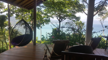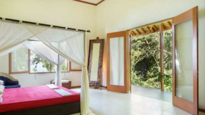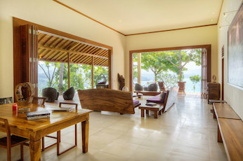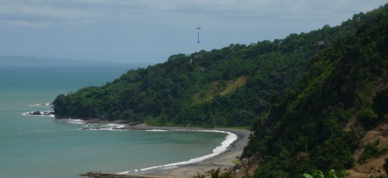 This Amazing Beach villa is nestled on a hilltop overlooking the Pelabuhan Ratu Bay. With it's own beach access and surrounded by tropical jungle it is truly the James Bond location.The Villa has 4 large double bedrooms, 2 bathrooms a kitchen diner and a very large lounge area with bi-folding doors which open up 2 sides of the villa giving you a breath taking vista of the bay below on one side, and uninterrupted view of the jungle and mountains on the other.