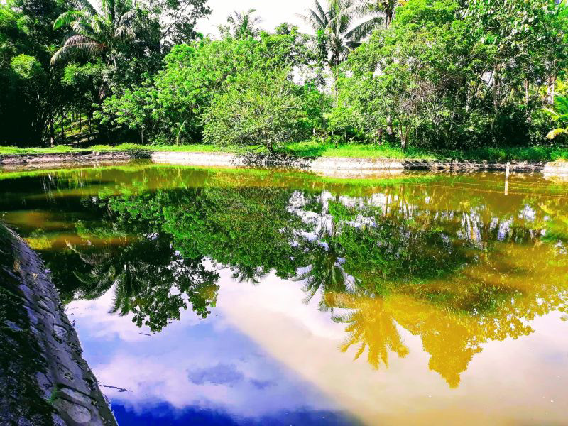 Trees such as mahogany, molave, germilina and bamboo, papaya, guyabano or soursop, jackfruit, guava, star apple, and over 100 small and large coconut trees, animals like ducks can be found on that area.