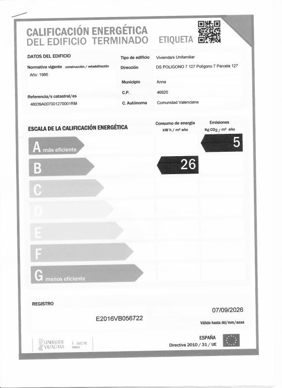 The villa is situated in the green and fertile foothills of the Macizo Del Caroig valley near the historic village of Anna which is 197 meters above sea level and has a population of approx. 3000, Anna has become a popular tourist area due to the local Albufera (a natural lake fed by springs) and the recently refurbished Moorish Palace. The village provides all amenities such as supermarkets, garage, health center, dentist, restaurants and bars etc.