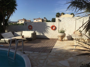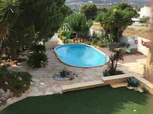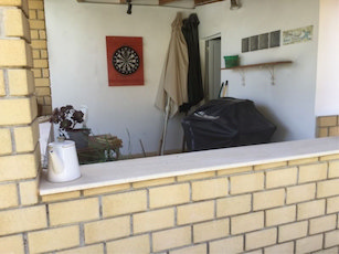 There is a swimming pool 7m x 5m x 1.2m depth with liner. Also next to the pool is a deck. Also brick built bar, WC and changing room.