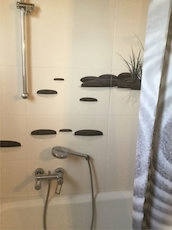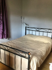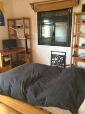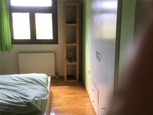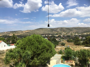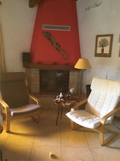 The middle level with main entrance door has a large lobby area with open plan lounge (30 sqm) with 4m high wood ceiling. The lounge has a fire place fitted with a newly installed gas fire. The kitchen (6 ring cooker + 2 ovens) and dinning area are on this level together with Master bedroom which has an ensuite plus walk in wardrobe. A guest washroom and a large balcony with a view across the valley complete this level.