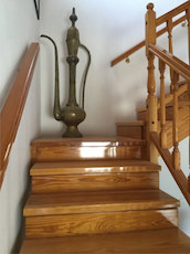 There are wood stairs leading to the upper level with 3 double bedrooms with built in wardrobes. There are mosquitoes screens in all windows, 1 full size newly refurbished family bathroom with bath and 1 WC are also on the top level.