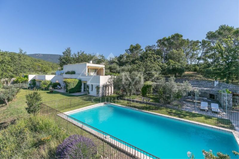 A modern villa with pool benefitting from a countryside setting, spacious accommodation and open plan style living, spacious terraces and internal courtyard. 7 minutes from Seillans, officially designated as one of the most beautiful villages in France.
