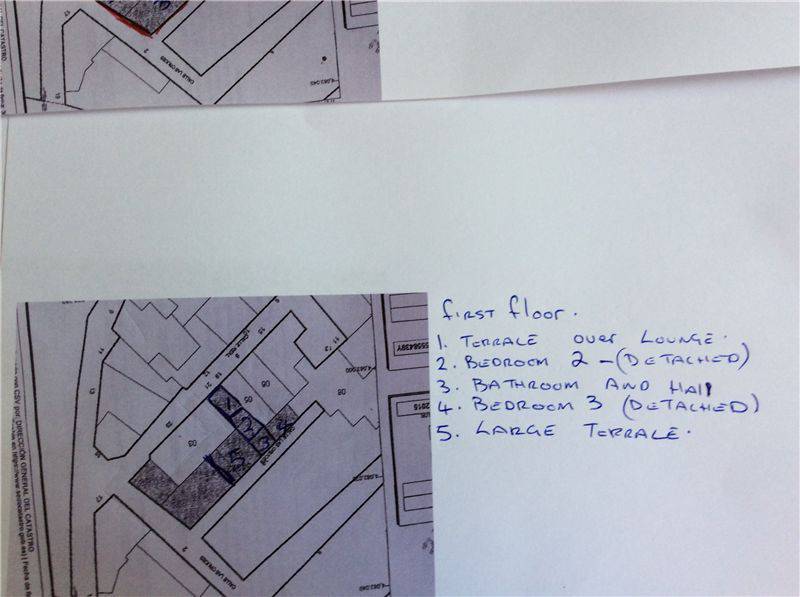 The roof terrace has several seating/dining areas, very sunny with far reaching views, wrought iron staircase leads you back to the lower patio and garden.