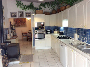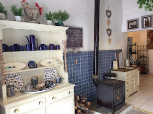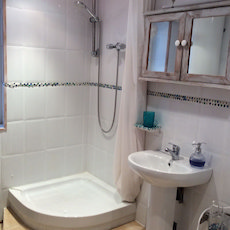 Downstairs you have a large and light living room with an open chimney and log burner. This leads through to the ambient dining room, then on to a very spacious fully equipped modern kitchen, with oven and hob, fridge freezer, dishwasher and washing machine. There you will also find another log burner(which has a stove top for authentic cooking, should you wish to). Double glazed door through to the dining/patio area and the garden.