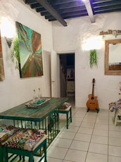 This residence has 2 floors, plus the roof terraces and a walled private garden. From the garden you will find the studio with fully opening doors to the beautiful garden.