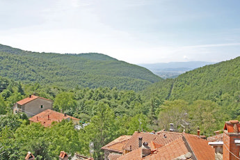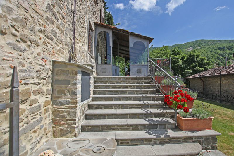 Casa Del Vescovo is a luxurious mountainside retreat currently used for guests and offering accommodation for couples in a beautiful and characteristic house built in the 12th century in the shape of Roman tower and located in a medieval hamlet. The space offers complete privacy for guests and it is possible to arrange rental of the entire home for larger groups or for 2 people sharing a bedroom. The dwelling can accommodate 14 people in a group. The entire home comprises 7 bedrooms, 5 bathrooms, 2 guest toilets and 2 kitchens with a large secluded garden containing a BBQ, external shower and sun loungers. The space is divided into 3 floors and can be separated into 2 self contained apartments one situated on the ground and first floors, and one on the second floor each containing a kitchen and living room.The second floor apartment commands stunning views of the valley below from the 30 square meters terrace. This apartment sleeps 4 with 1 queen size bedroom and another with 2 single beds.