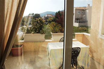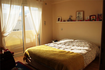 The natural wooden stairs lead to the first floor. This floor consists of three nice and big bedrooms and a bathroom. The main bedroom is overlooking Parnitha with a decorative balcony/large window that lets all the light in. This bedroom also features a walk-in closet with a window.