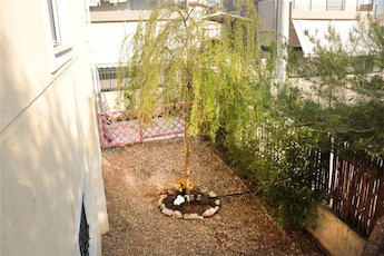 This semi-detached 220 s.m. house in based in the suburbs of Athens, right in in the foothills of famous Parnitha Mountain. The scenery is quiet and green with only town houses around. A nice residential-only area, walking distance from the famous "tavernas" of Parnitha. The house features a 100 s.m. garden with trees and flowers and partly paved surface with vintage art tiles.It consists of four floors: The semi-basement floor is a small apartment of it's own with a kitchen-living room area, a bathroom with jacuzzi and a bedroom.