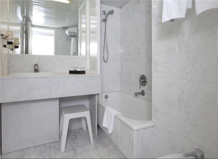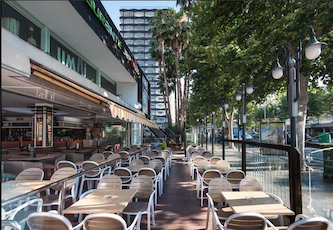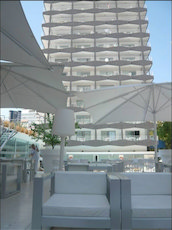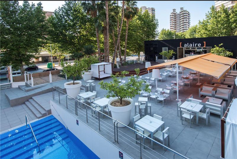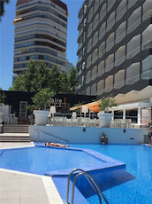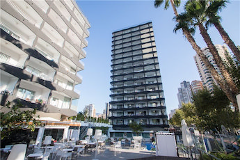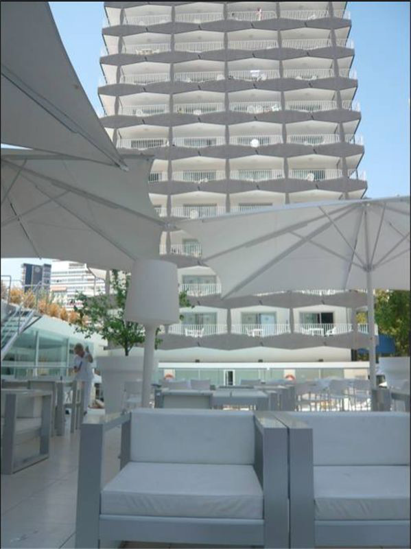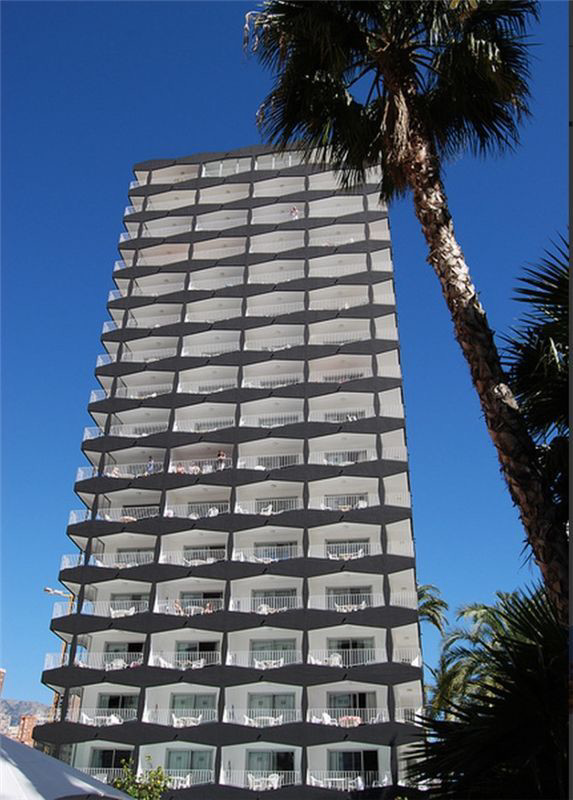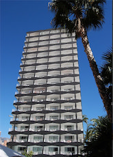The vintage architecture is from '77 and is still a true eye-catcher. Apartamentos Belroy & Hotel Belroy Palace (4 star rated) were painted black in 2007 which makes the whole property very striking. They have currently started updating, amongst others, 2 elevators inside the Apartamentos Belroy.