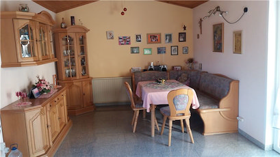 The comfortable kitchen with the adjacent dining room has direct access to the patio as well as to the terrace. Due to the big windows the rooms are light and comfortable. Through the entrance area with a small cloakroom one enters the living room, the kitchen and the first floor.