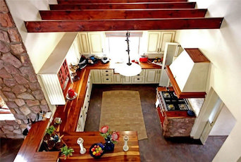 There is also a separate dining room branching TO THE OPEN PLAN FRENCH KITCHEN WITH GAS STOVE.
