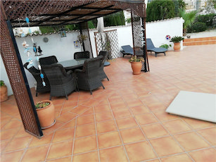 Outside Rear: Second large terrace with balustrading leading onto a spacious rear garden with a 4x3 metre (man cave) shed used primarily for storage.