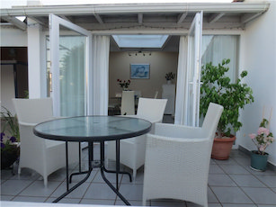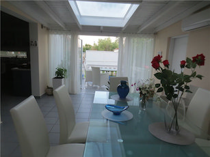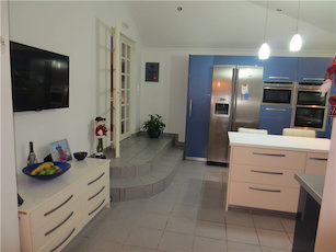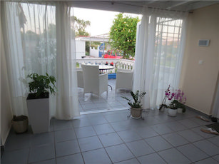 BUILDING TWO Blue and white authentic Greek exterior, a three bedroom villa on one level set in it's own garden, with a large kitchen, dining room with sunlight roof windows, lounge, bathroom, garage for two cars, gym, large laundry room and balcony. New air condition. Led lighting and fittings. Adequate space for private pool.