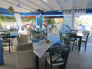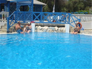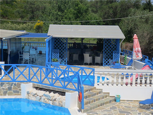 A KITCHEN for the RESTAURANT / BAR Blue and white authentic Greek exterior seating area. Inside and outside dining and seating area. A permanent pavilion with seating. Pergola surrounding the restaurant area for a shaded eating area. Pool table. Area for children’s play area. Fully equipped kitchen, eg freezers, fridges, dish washer, ovens and gas hobs. Kitchen professional fire system. Stainless steel tables. Two kitchen areas, cooking area separate from washing area and storage area. Instant hot water electric system. Two double deep sinks, one in each kitchen area. Large fridges at the bar. Outside drinks storage. A children's swimming pool with cushioned edges a stone waterfall and bridge connecting to the adults swimming pool. Underground swimming pool machinery. Natural stone area surrounding the pools for sunbeds, umbrellas and tables