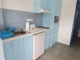 BUILDING THREE Blue and white authentic Greek exterior. consists of a one bedroom apartment, 2 two bedroom maisonettes with internal stairs, with a kitchen, en-suite bathrooms and bedroom balconies and 2 two bedroom apartments on one level with a kitchen, bathroom and bedroom balconies. Possible extension for more apartments on the flat roof.