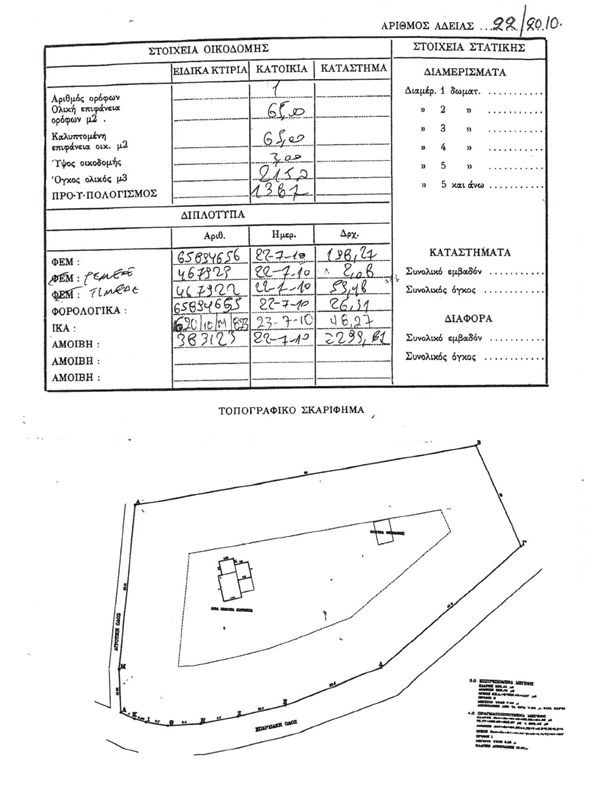 The land is approximately a little over 500 square meters (0.5 stremma) and the dwelling has 70 square meters of living space.