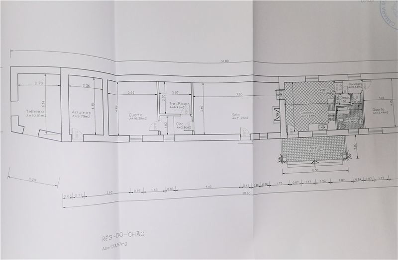The ground floor has an area of 173 m2. The house consists of: