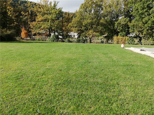 Large garden with various trees (including fruit trees) and lawn - automatic watering system.