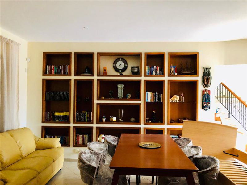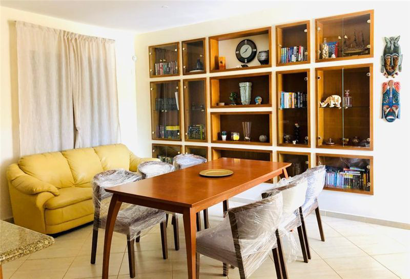 First floor - one living room, TV, full equipment kitchen with dining area, toilet.