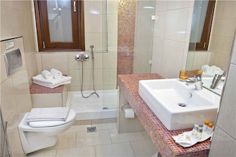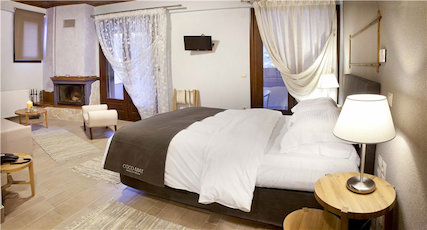 The hotel layout is 5 floors (Ground floor, 1st floor,a loft, a semi-basement and the basement). There are 16 guest rooms (located ont the 1st floor), 5 private rooms (located on the Loft) and 3 personnel rooms (located on the semi-basement). Chrisomilia the village next to the hotel is known for its apple trees(hence it’s name Chriso “Golden” milia “Apple tree”).