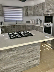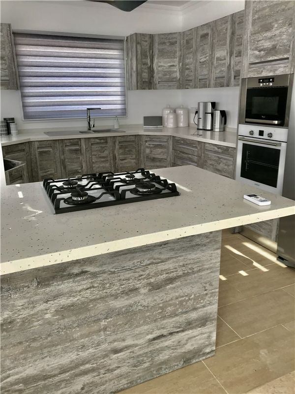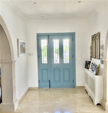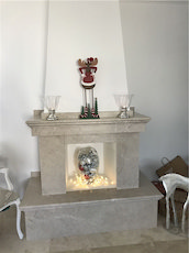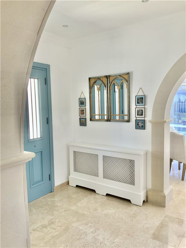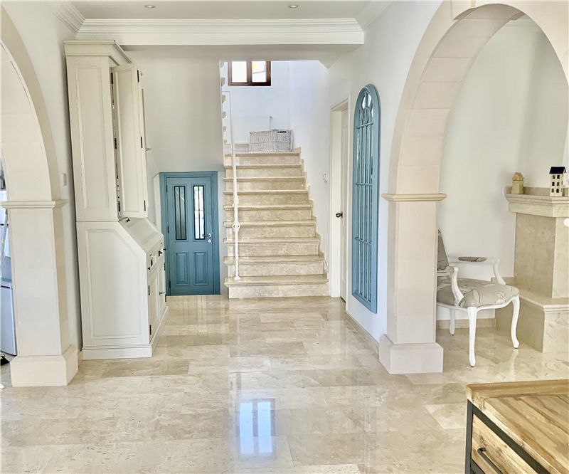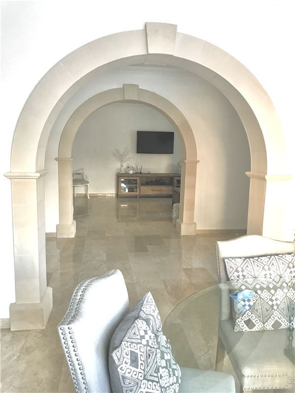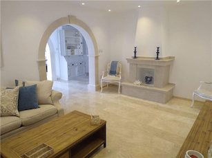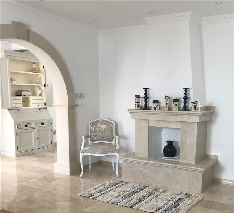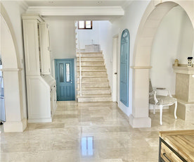 - Marble and chisled travertine flooring from Izmir throughout