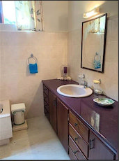 There is private off road access leading to the house with a spacious driveway as you near the house. There is a secure two-car garage and storeroom on the ground level with an ornately designed staircase leading to the entrance of the house.