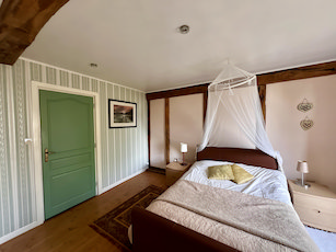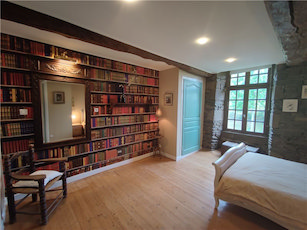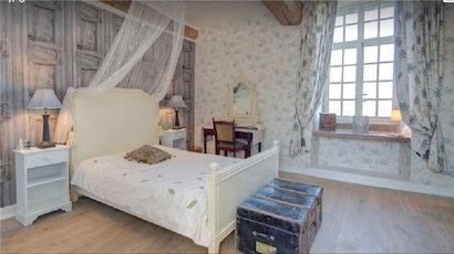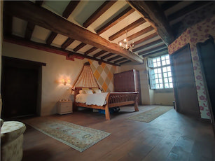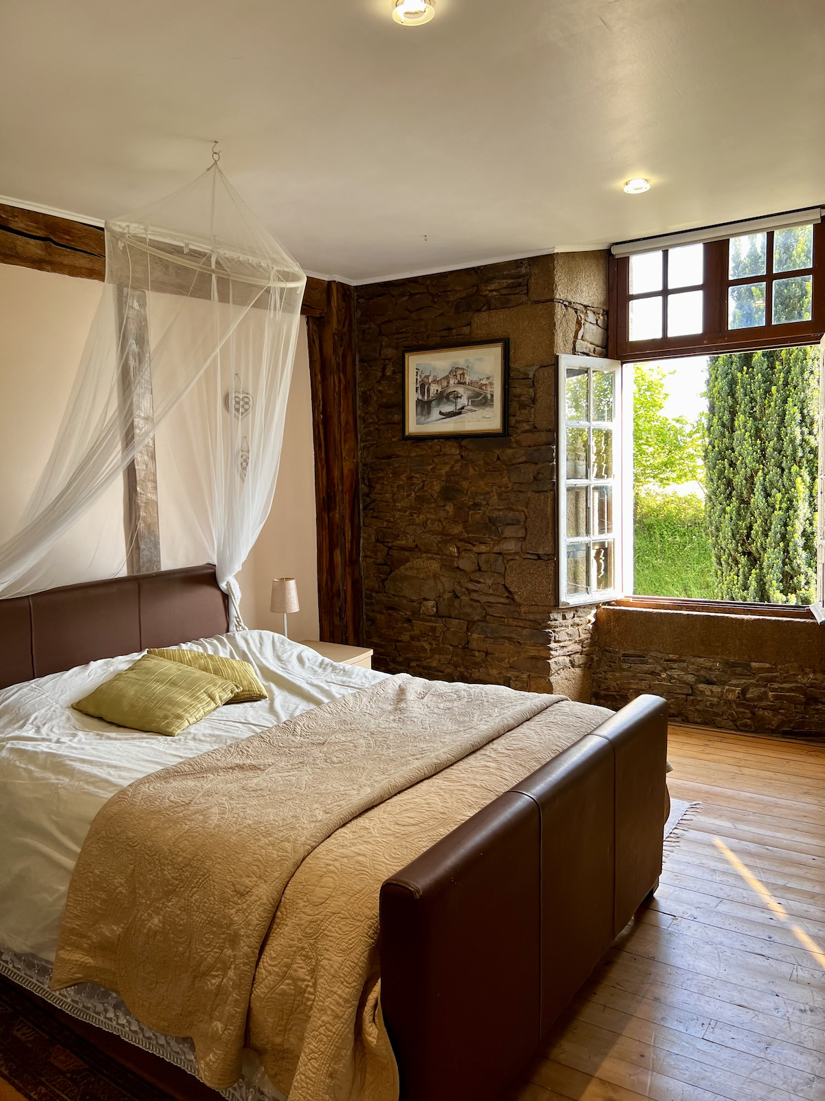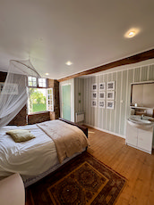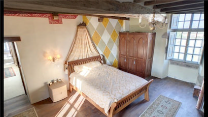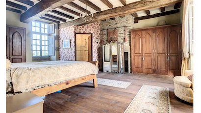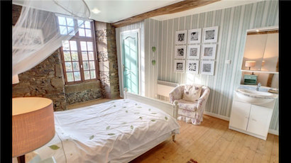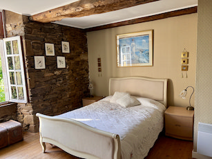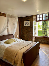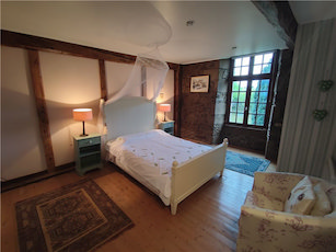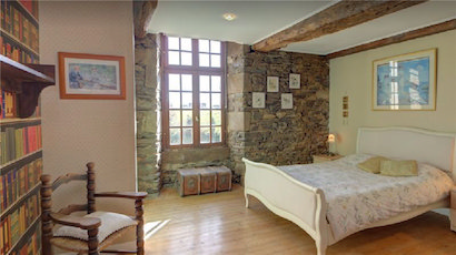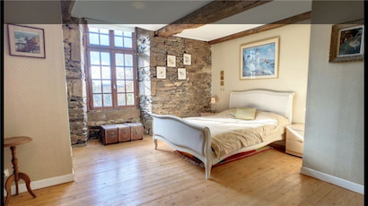 has a new solid oak floor . The second bedroom is the master bedroom and has been completely remodeled restoring it to its former grandeur with exposed beams in the ceiling , the walls have been completely rendered with lime based render . It has en-suite wet room with underfloor electric heating. The bedroom also has custom made built in wardrobes made with solid walnut . It features a large granite fireplace and has a new solid oak floor. On the west wing there is a corridor leading to a large family bathroom with full size bath and shower screen . Along the corridor there are two large bedrooms with built in wardrobes . This side of the house has been successfully used for b+b for a number of years. As the Chateau de la Rouerie is used for society weddings , some of the guests book b+b at the Manor as well as people who visit the Mont St Michel all year round, the main comment on our reviews is always how impressed they are by the Manor. People flock to the Mont St Michel (the second most visited tourist attraction in France and UNESCO heritage site) from all over the world, this magnificent medieval city is 20 minutes from the Manor. .