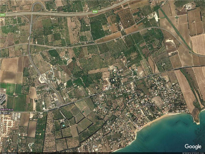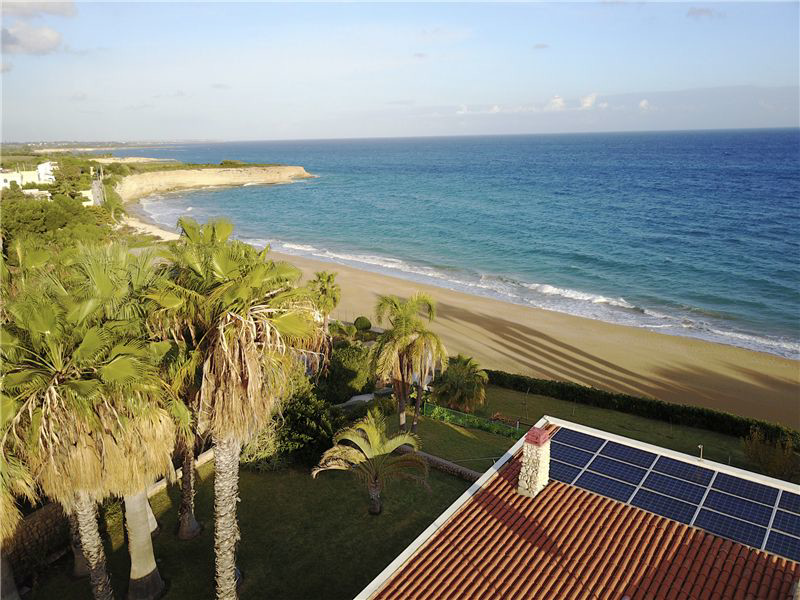 The area, about 6 m above sea level, overlooks with breathtaking view a picturesque, quiet bay, 0 distance to beach (very fine sand)