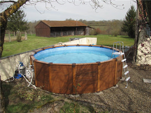 There is a large patio area overlooking the main lawn and garden. A 15ft diameter over ground pool is currently adjacent to this patio area.