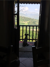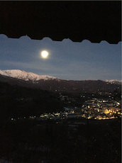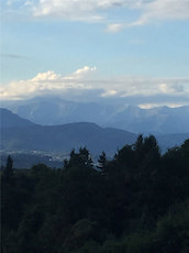 This house has been a haven of tranquil peace, a refuge and delight with a panorama that is breath taking. The house is surrounded by its own one acre plot of enviable fruit trees and woodland, that looks down on the town and across to the Alps that border Italy with France and Switzerland. The photos tell the story.