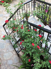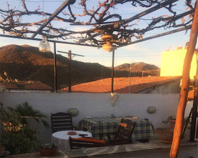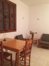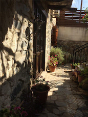 The living room leads out onto the vine covered veranda which has spectacular views of the surrounding countryside and also over the heart of the village; centred around the church of Agios Georgios, and a local kaffineo. An outdoor wrought iron staircase leads down from the veranda to the central courtyard. The second "studio" property can also be accessed from the ground level courtyard, and was originally built as a village kaffineo. With plenty of storage, it comprises of an open plan living/sleeping area and also has its own kitchen and bathroom. A separate entrance from the street means it can be used as a detached rental property or a staff residence.