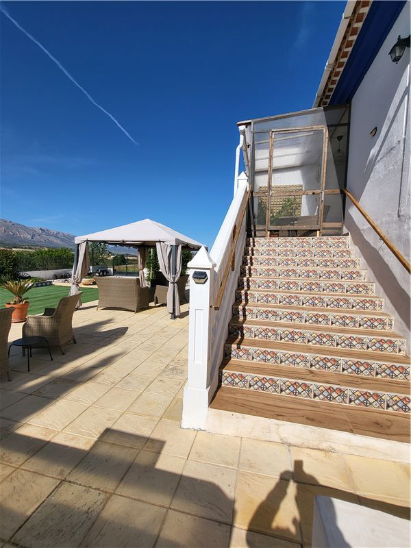 This property was very recently renovated throughout, with extensive use of extremely high-quality materials and finishes. This includes brand new UPVC windows with solar glass double glazing and doors, all new Mitsubishi hot and cold air-conditioning throughout, brand new kitchen and bathrooms, new flooring, an extension to the staircase leading to the main garden, and two extensions to the villa itself to add an entrance porch and a fourth bedroom, and much more.