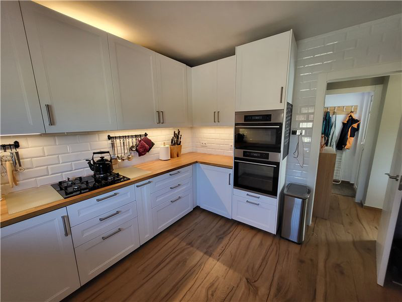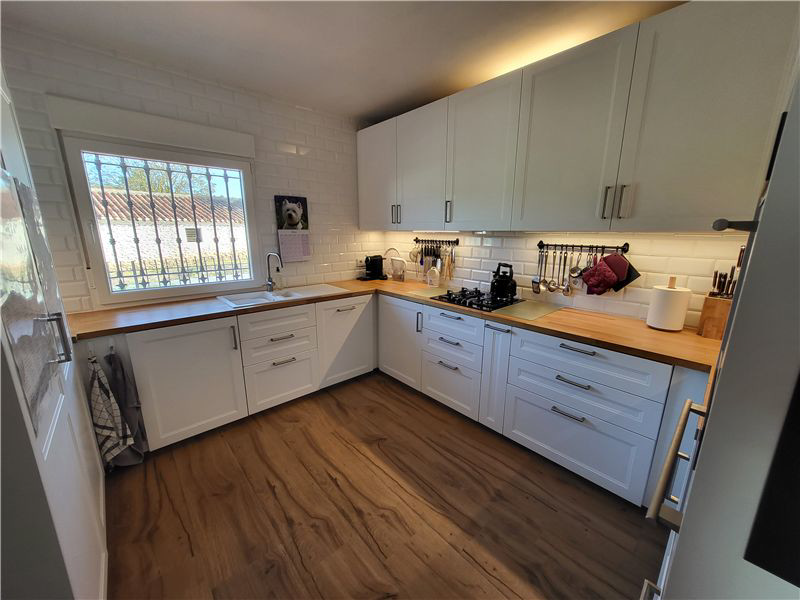 Entering the property from the lovely terrace to the front of the house, you find yourself in an entrance porch. This then leads on into an entrance hallway leading into the various rooms of the property, and is also where the pellet burner is located, capable of heating the majority of the house. An opening leads directly through to the main living-dining room, which is a vast space with plenty of windows allowing light to flood in, as well as a door leading out to a terrace that has been enclosed with insect screening. Further on from the living-dining room is the spectacular kitchen, featuring a wide range of appliances and abundant storage space. Adjacent to the kitchen is the large pantry and utility room, which also has a door leading out to the aforementioned enclosed terrace.