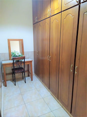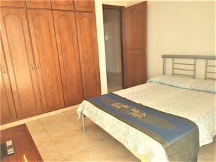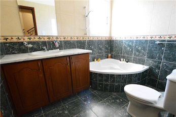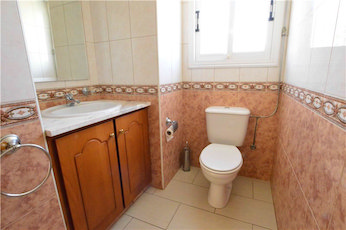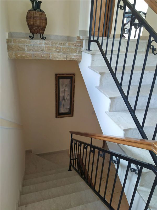 A marble stair case leads down to the middle level, with a spacious landing area. There are three fully fitted double bedrooms. The master bedroom is a particularly good size, having an en suite and and a separate dressing area and enough room for a seating area. The Patio doors in all bedrooms lead out to covered verandas. There is also a large family bathroom on this level with white suite, including a corner bath and shower and a vanity unit with marble top. A further marble staircase leads to the lower level / basement.