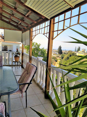 There is a further dining area in the fully fitted kitchen which is furnished with granite worktops. Patio doors in the kitchen lead out to a second large veranda, for outside dining and has views to sea and mountains. This veranda is completely under cover, having a tile effect roof, attractive trellis and metal shutters.