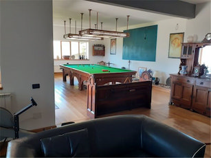 From the entrance hallway the wooden staircase leads down to the ground level which immediately gives access to the impressive open plan games room. This room is complete with full sized snooker table. There is ample room for entertaining. Leading off the games room are two sets of doors that lead to two ground level covered terraces.