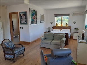 Down a short hallway in the games room there is guest bedroom #2. This large double bedroom is open linked to a large beautifully appointed bathroom and double doors that open to the front garden.