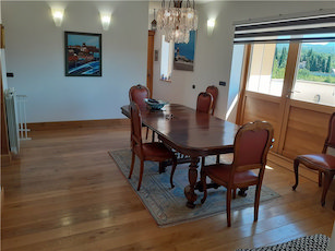 Off the hallway is the doorway entrance to the dining room. Here we are greeted by tandem double glazed doors that open out onto the main south facing terrace offering the most spectacular views of the Majella mountains.