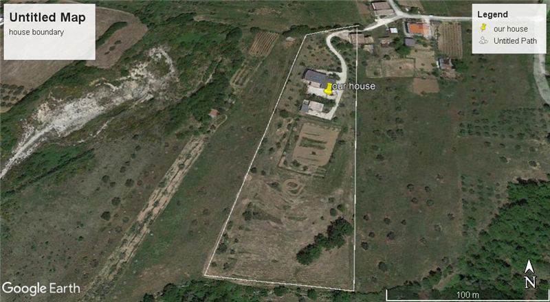 Below the villa is a productive vegetable garden and a large workshop which is currently equipped for woodworking This is 11X 6 metres and is served by electricity and water and is prepared for a toilet. The vegetable plot is fully fenced and for irrigation is served by a large underground water store that collects water from the roof of the main property.