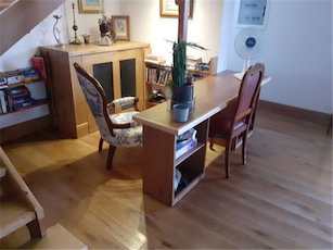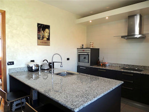 Adjacent to the dining room is a modern kitchen furnished with a wall of fitted cupboards and a large marble topped island ideal for casual dining. This is the only room that does not face the Majella, instead it looks North onto the orchard.