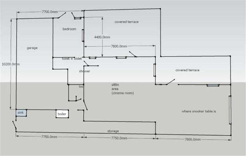 Returning to the games room there is a hallway giving access to a ‘bootroom’, bathroom and to the double garage and cantina.
